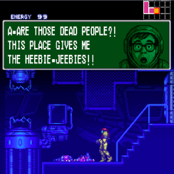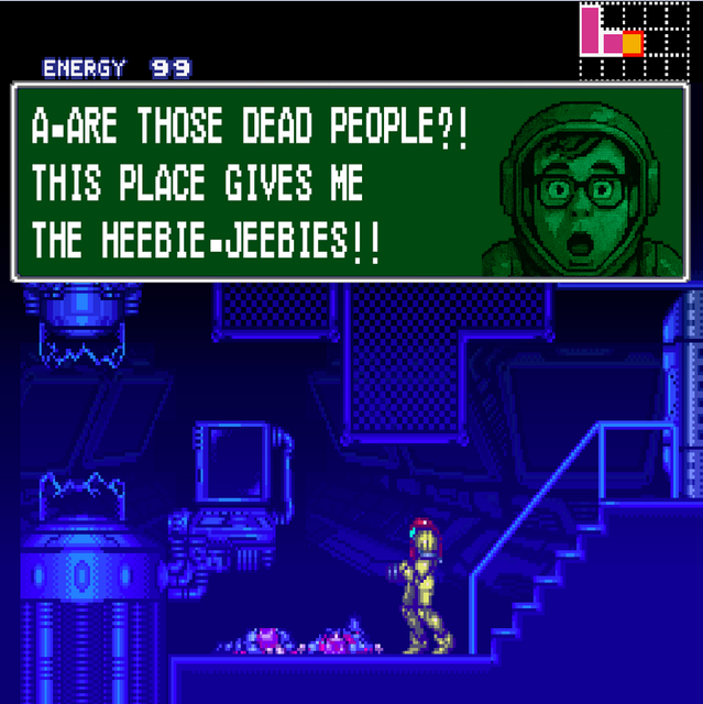 Reminder: The writer for this gayme is a mentally ill man that chopped off his dick that believes Samus is a mentally ill man that chopped off his dick.