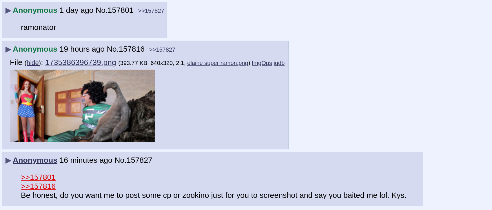 >>173262Well its not like we can't keep it going by making kino like the AI kino OP made or Super Ramon.