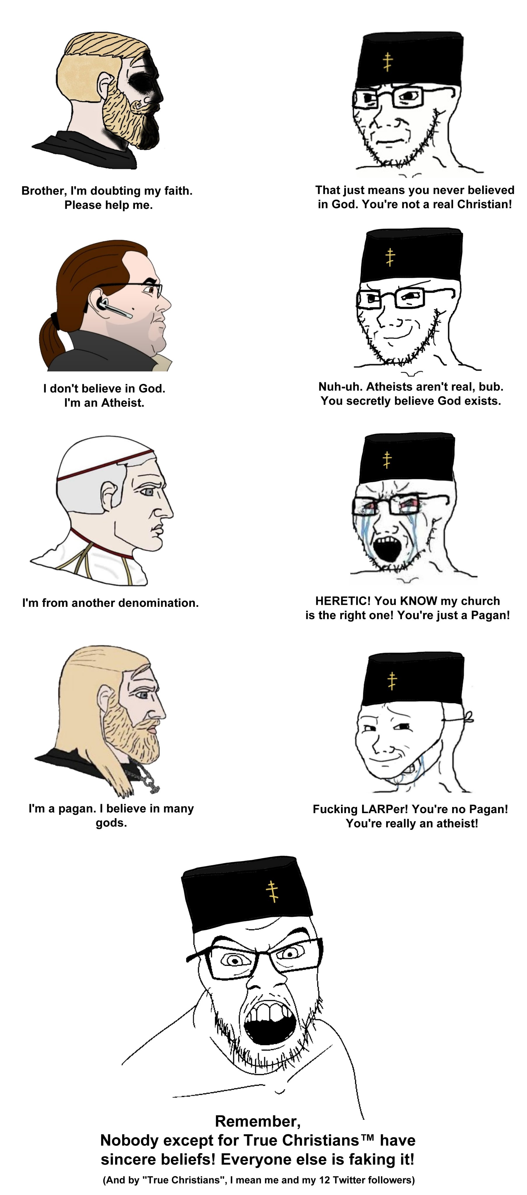 Christianfags are the new fedoralords. Most of them are midwits losers trying to look smart by larping as templars or monks.