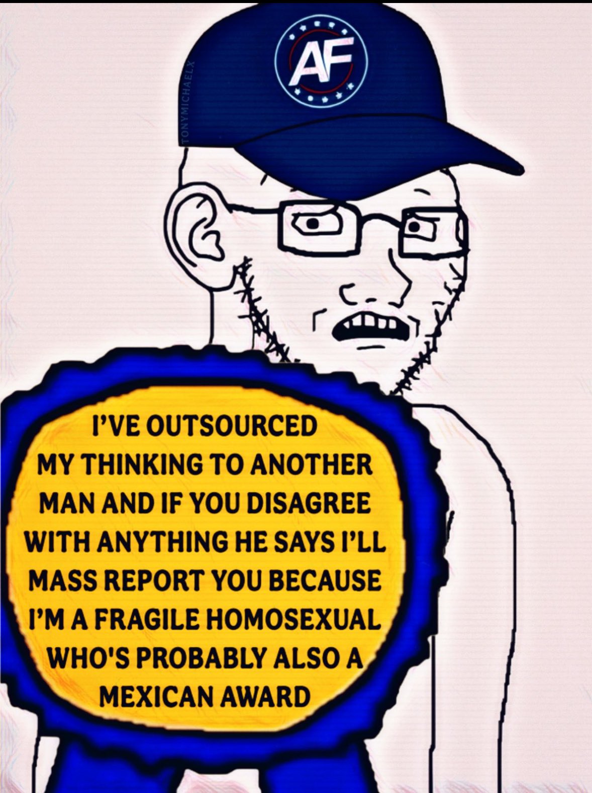 >>165486>I got blocked by one of Fuentes' orbiters for reminding him that he's a blowie-glowie, they really love the fact that he's in bed with breadtubers because they share so much in common.Nick the Spic's dickriders are insufferable. They condemn real nationalists as "wignats" (pure projection considering that their leader is the one with the crush on a shitty rapper) and people actually doing things IRL like the Return to the Land guys. The personality cult around their narcissistic master is embarrassing. The guy clearly isn't race first, is a shill for Catholicism, and has nothing but contempt for his own audience. Imagine being enough of a pathetic bottom feeder to white knight for someone who openly hates you as much as he does.