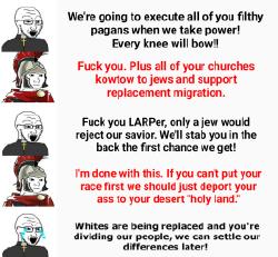 >and Christians in general will often bash paganism while simultaneously citing and trying to Abrahamize figures who were products of the pagan world.Ironically in that the Old Testament is essentially pagan. The Jews are a variant of Paganism. They do not deny the world. They do not believe in an afterlife. Their are not cucks. Their version of heaven is the tribe i.e. their blood.