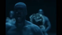 Also, I think the Ulfhednar the camera stays on at the end whose face you can't see is Kanye.
