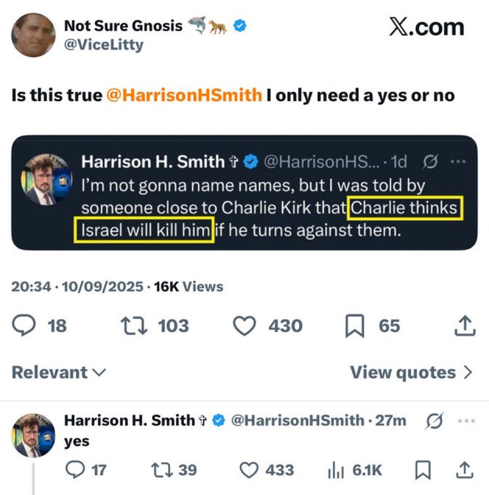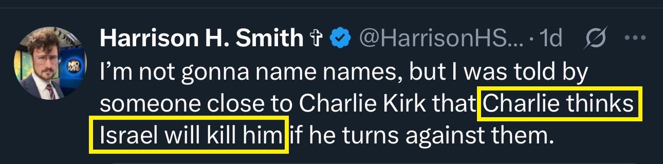 https://x.com/HarrisonHSmith/status/1955705962964111425Who Gave The Stand Down Order On Oct 7th? - Charlie Kirk (1:39)