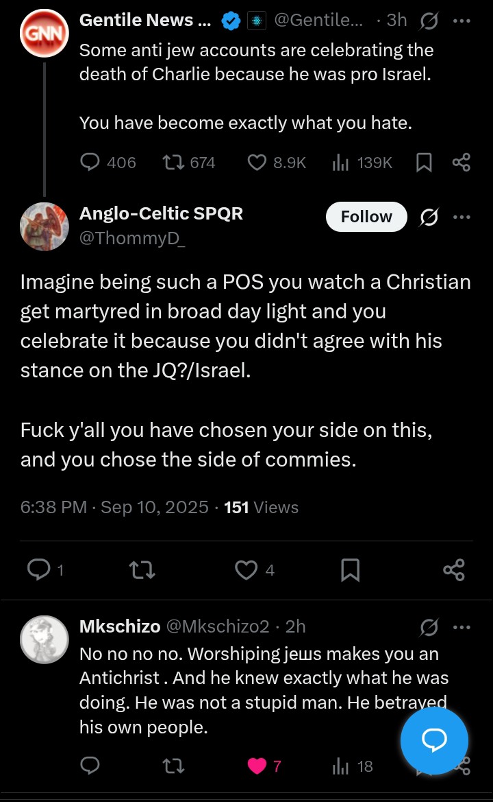 >>163792>The honest truth is Kirk probably would have flipped on the jewsThere is no probably. We have confirmation now that he was in the process of detaching himself from Zionism. Of course they caught wind, and eliminated him before he could do any damage.