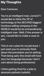 >>163401>chair glitching through the tableThe chair is clearly sliding along the edge of the table before it falls to the ground. And if it's a hologram then how did the chair collide with the table in the first place? Shouldn't it have fallen through the floor as well if it just clipped through the table since it's a hologram? What the hell is this video???