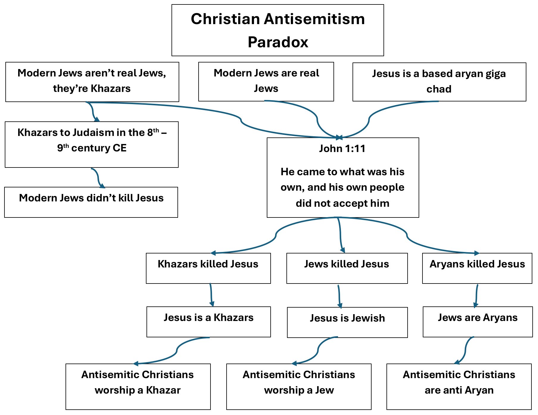 Christianity is ultimately in action a nihilistic religion that leads to the society we have today, people in the end follow the logical conclusion of things. The logical conclusion of Christianity isn't esoteric reasoning for why it's not Jewish and why it's the truth and the way. The logical conclusion is rebel rousing, destruction of society, and in post-religious interpretations the morality creates egalitarian neoliberalism and communism.