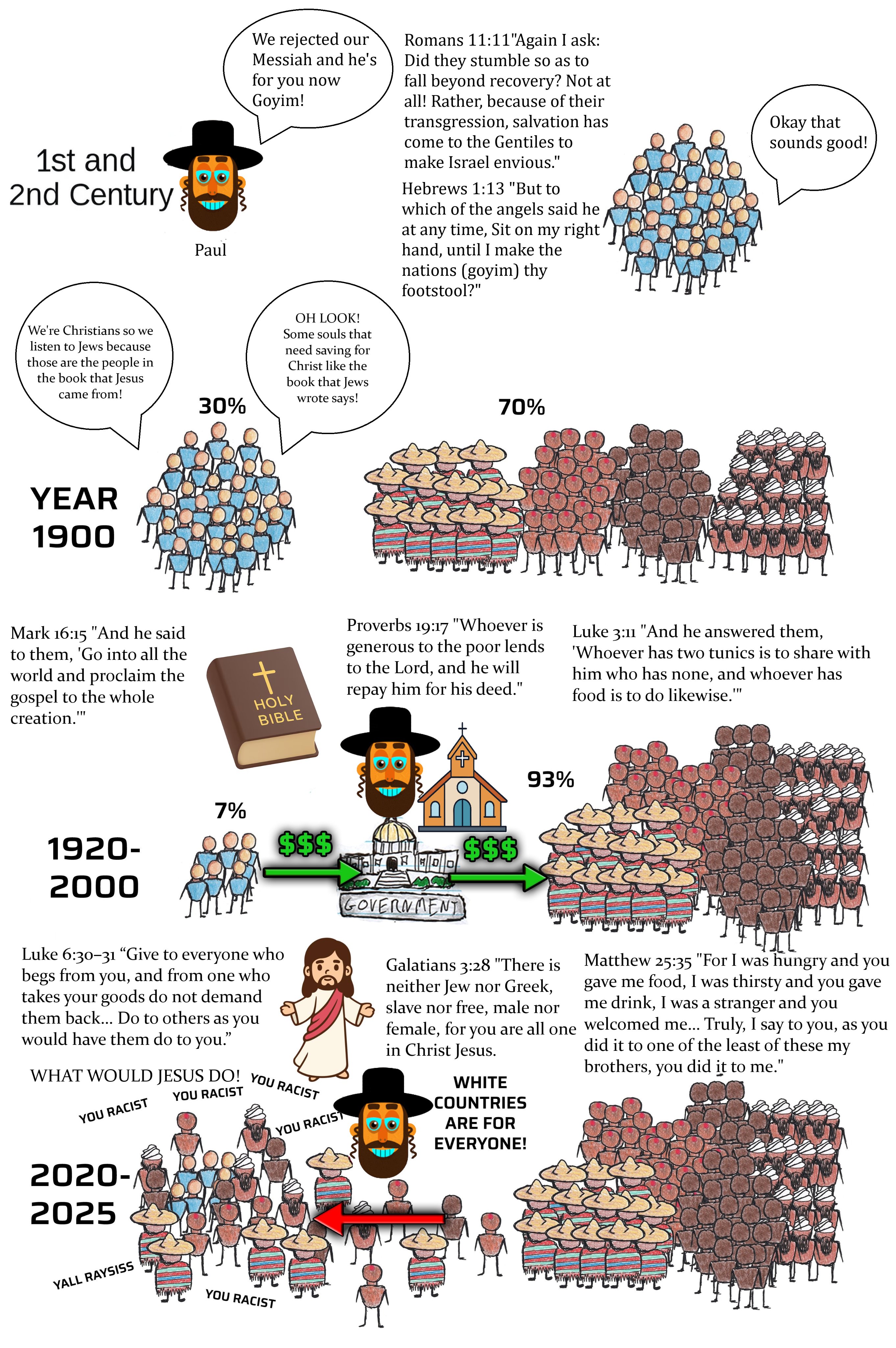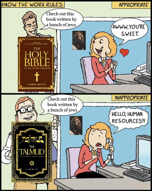>The last thing the kikes should want is for you to read the OT because of how it portrays them, fact or fiction. Besides that, it's not like Gentiles were all magically literate in Hebrew and had ready access to the Hebrew Bible so they could all sit down and read it to one another, and what's more is that what they were learning about the OT from the Jews who preached the gospel to them is that the old laws were of no effect anymore.The Old Testament only intends to show Jews as bad in the sense that they supposedly weren't following their tribal god Yahweh hard enough.