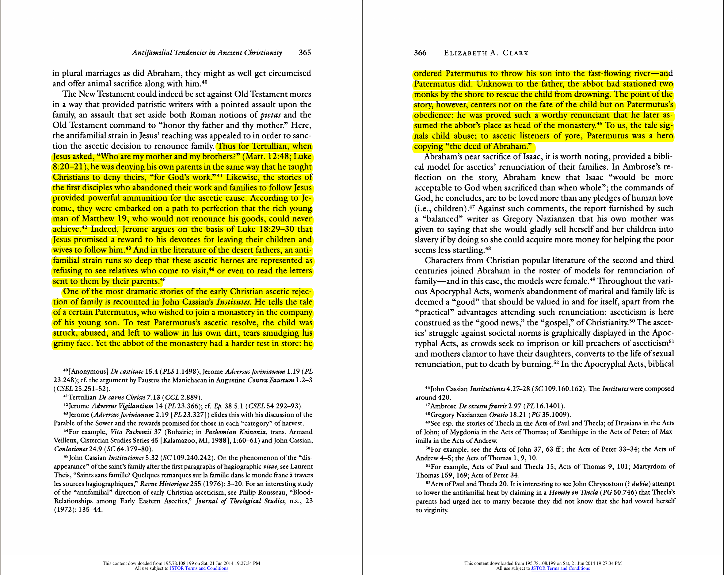 I've also included a relevant bit from the Antifamilial Tendencies in Ancient Christianity paper I linked to earlier.