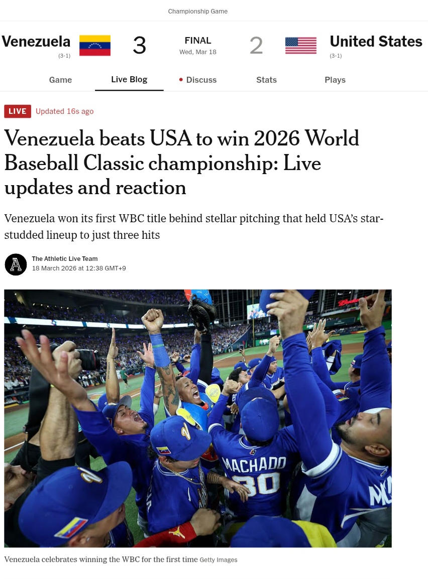 >>168852It's baseball,Venezuela beat USA in the World Baseball Classic. Embarassing since USA should be good at it.