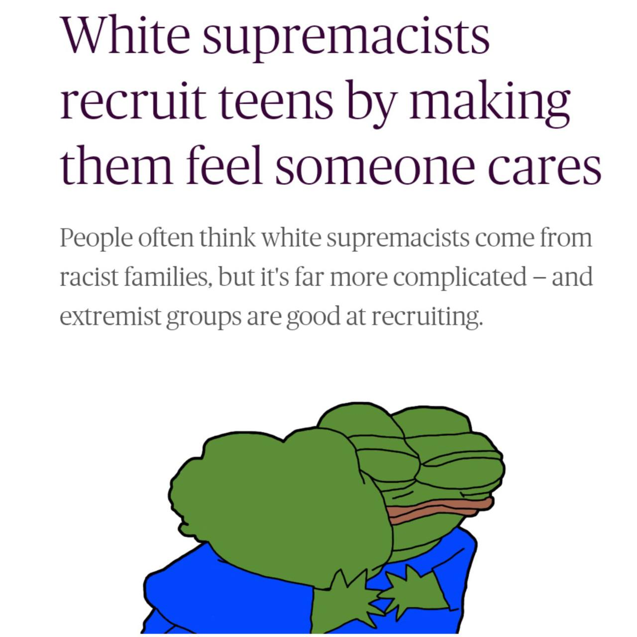 >Yeah, and the people trying to reopen old wounds need to cut it out. A lot of them are basing their views on generations of oversimplified pop culture narratives too.>basing their views on generations of oversimplified pop culture narratives too.I've seen this firsthand many a time. These suburban Whites that drive big jacked up trucks, ain't got a speck of mud on it, and blaring rap music outta it, then scared to say nigger, don't know the 14 words, wanna hem and haw about race. "Heritage, not hate". Weak shit. Racial self-respect and pride is not some commercialized identity you can buy and sell like a fucking Toby Keith CD. I've been around some real dudes though but there is a lot of faggotry and weak Prager U TPUSA boomer type cancer around some. Hopefully those guys take the steps needed to wake up on racial issues. Or not. Or they can just die like a lemming. Kinda off on a limb here but TL;DR its racial its racial its racial White Unity above everything.