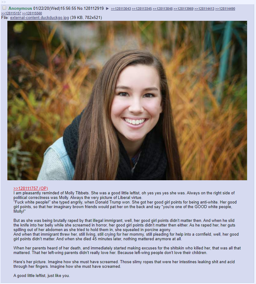 >>167499>the corpse of South Africa continues to shamble alongThere are even libtards still remaining in South Africa, if you can believe it! (!!) Look up the Amy Biehl story if you don't know about it already. Everyone should know this by now. This is a level of cuckoldry like Aiden Clark's dad, Mollie Tibbetts, etc etc. Deeply sick stuff. White anti-Whites make my skin crawl. She was anti-apartheid, vocal "anti-racist", got got by nigs, family cucked out HARD like really hard. I can't even fathom living in FUCKING AFRICA and being a race-blind cuck, holy hell.