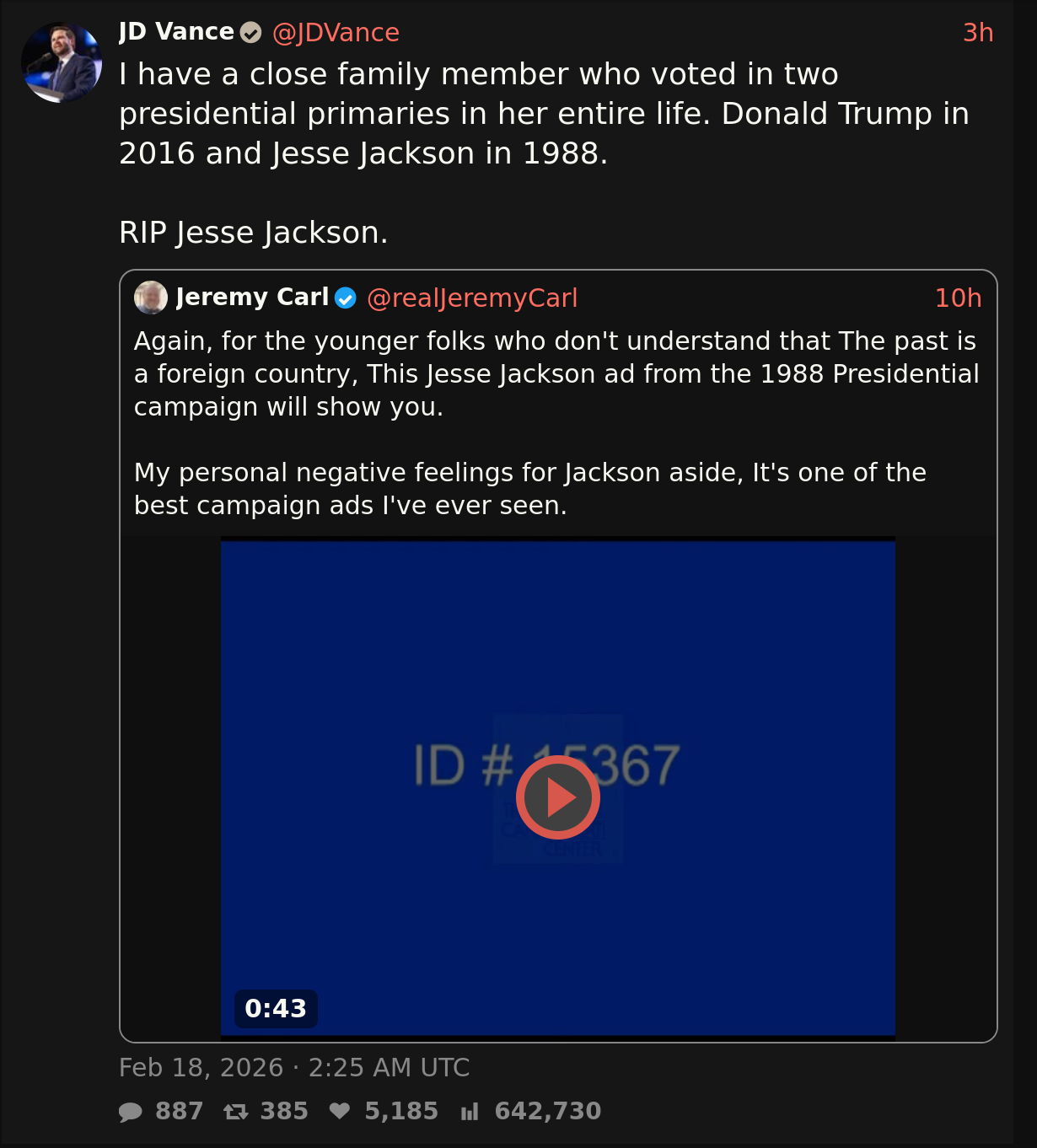 >>167844It's called pandering. The GOP needs some of the black vote to win. Saying "Fuck Jesse Jackson" while the body is still warm is not gonna help conservatives win.