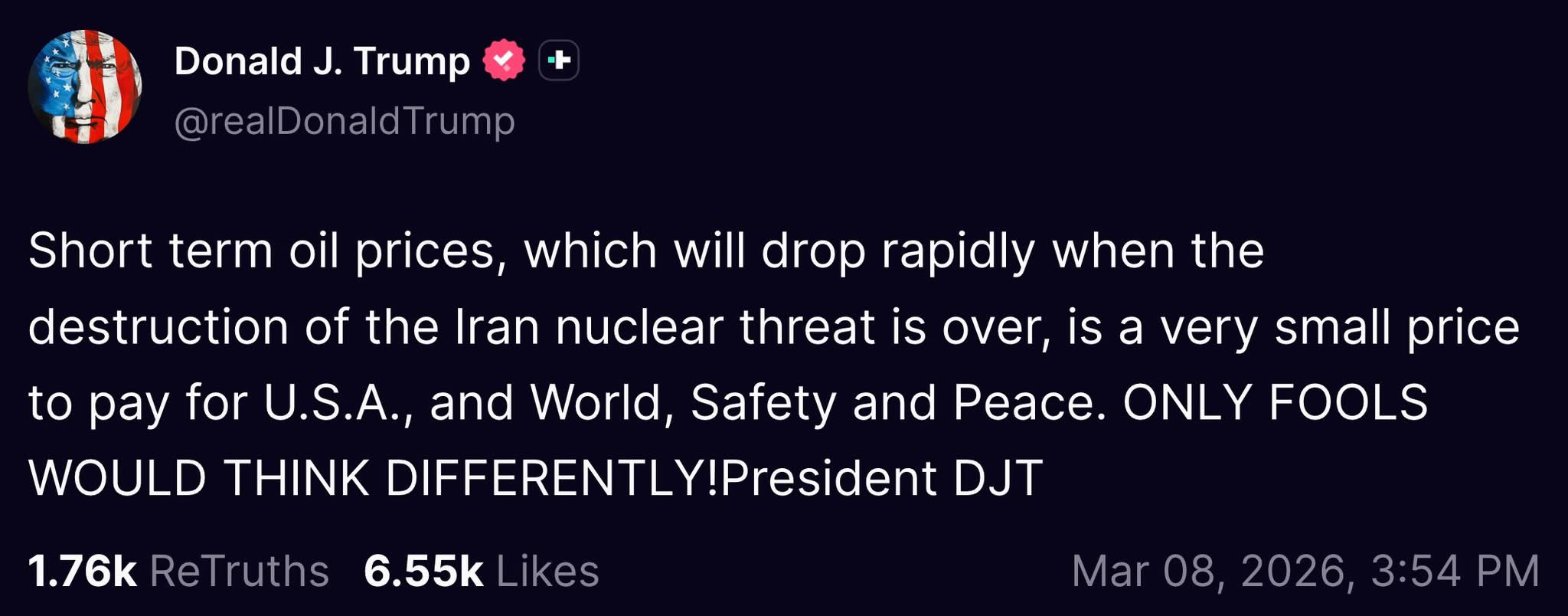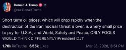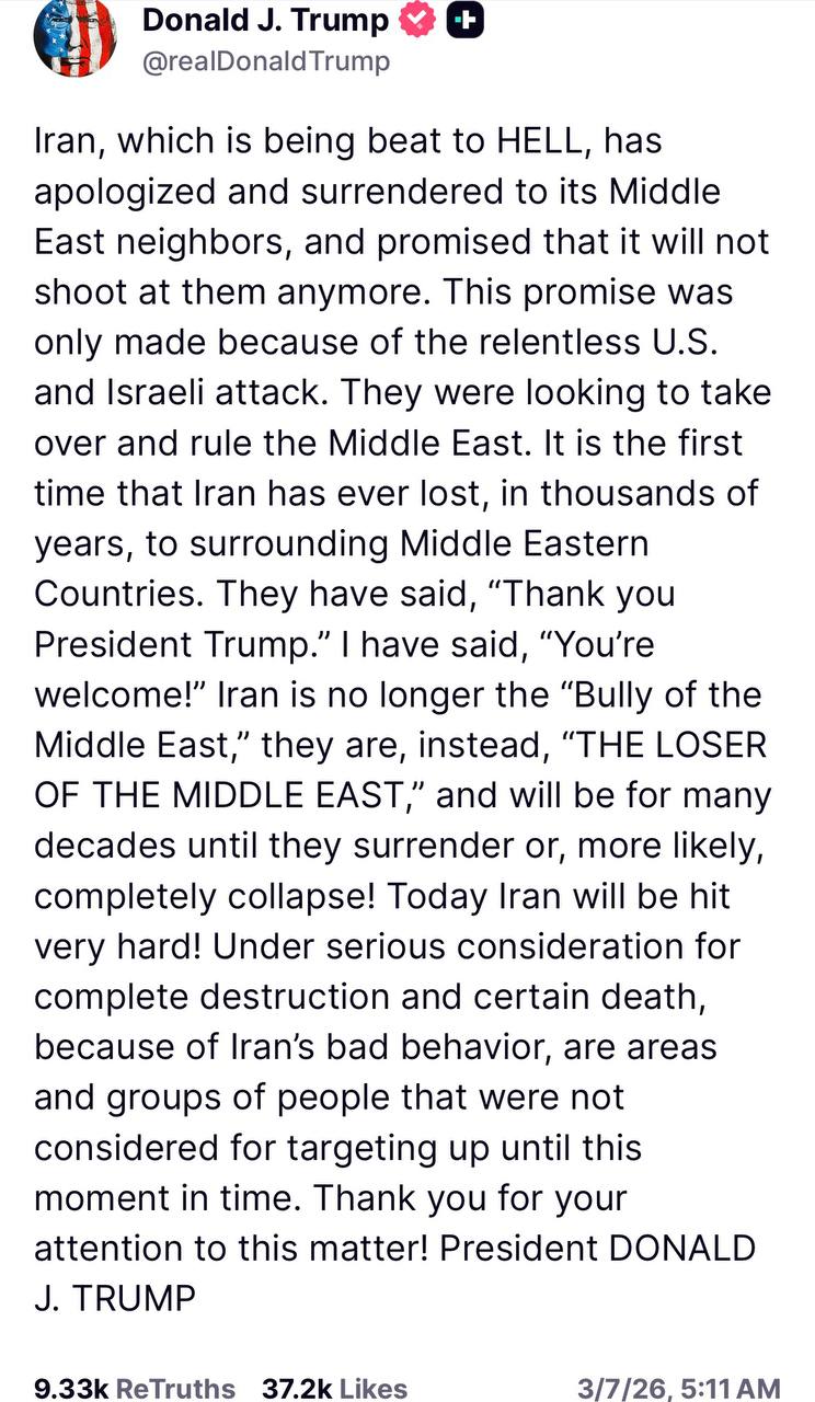 >the us has several win conditions with the ideal being the capitulation of iran (which is unlikely) but more realistically the decimation of their military capabilities or some kind of coupWell there wasn't a "super-repressed coup waiting to happen" on Day 1 (contrary to "reliable Israeli intelligence"), and their military capabilites are still operational + now being bankrolled by Russia and China for the foreseeable, so looks like both of those are fucking disasters.