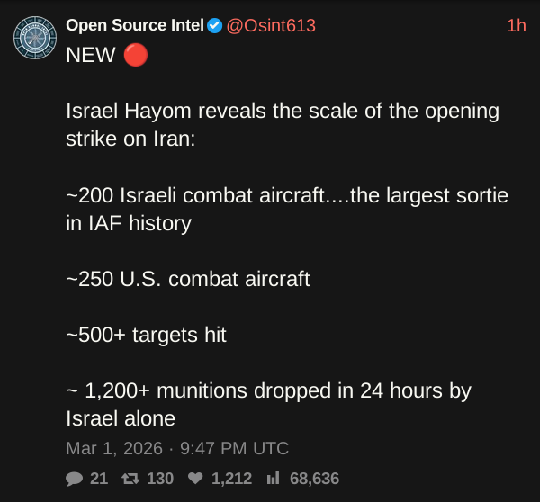 >>168057>FOREVERWARHighly unlikely considering the US military has an ammunition shortage. They are utilizing the shock and awe doctrine and aim to wrap this up in a couple weeks. It's called Epic Fury for a reason.