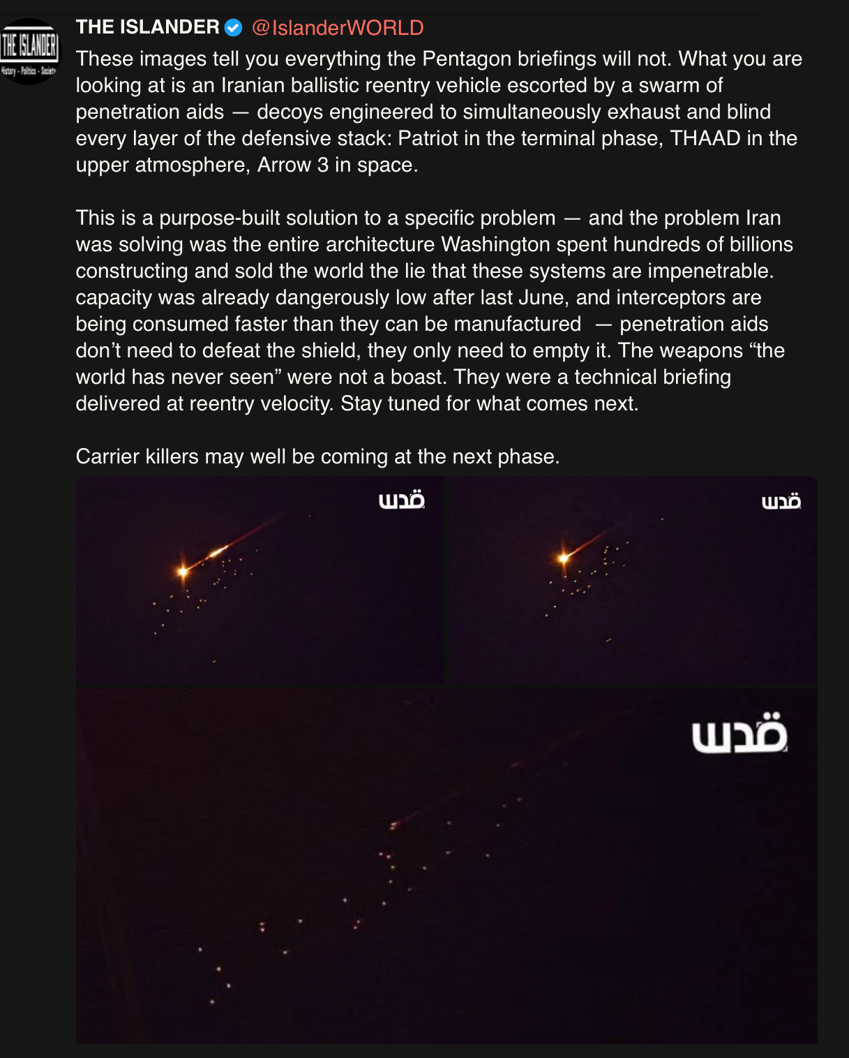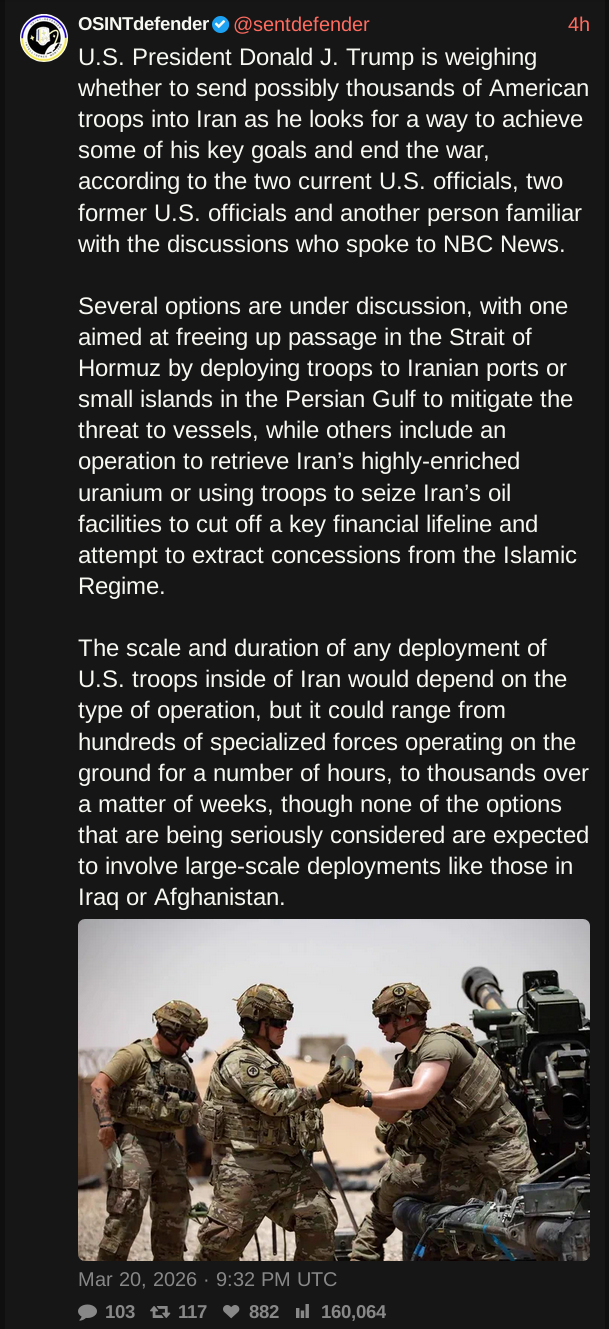 But Anon, Iran is a giant mountain range, we already know from Afghanistan, that that shit doesn't work! Yeah. It's not going to be a clean dupzeula-style kill, the USA is going to take notable short-term losses, but it's clear that the longer this goes on, the weaker the US's place on the world stage is going to be, militarily and economically. It needs to be over yesterday, and marketed as another round of strategic deep-strikes against