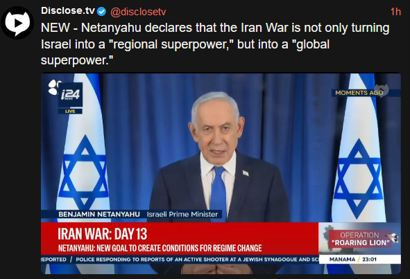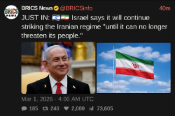 (like last time). For literally everybody else, it's best that this is dragged out. Including Israel, as they can use it to monkeybranch into roping the USA into other regional conflicts while they're there. I see Israel offering no help / counter-help / false flags intended to deliberately partially cripple the USA