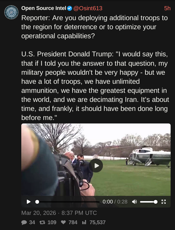 >>168954Trump saying a whole lot of nothing again. If he tries to land troops its within Irans artillery range.