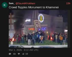 The Iranians are divided, with some celebrating, others calling for revenge for the death of Khamenei. We've seen this movie before: remember "America will be greeted as liberators" in Iraq? They're not all gonna fall in line with reestablishing a secular government.