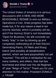 It looks like they're giving the Iranian regime one last chance to capitulate. Will they bend the knee, or go down fighting?