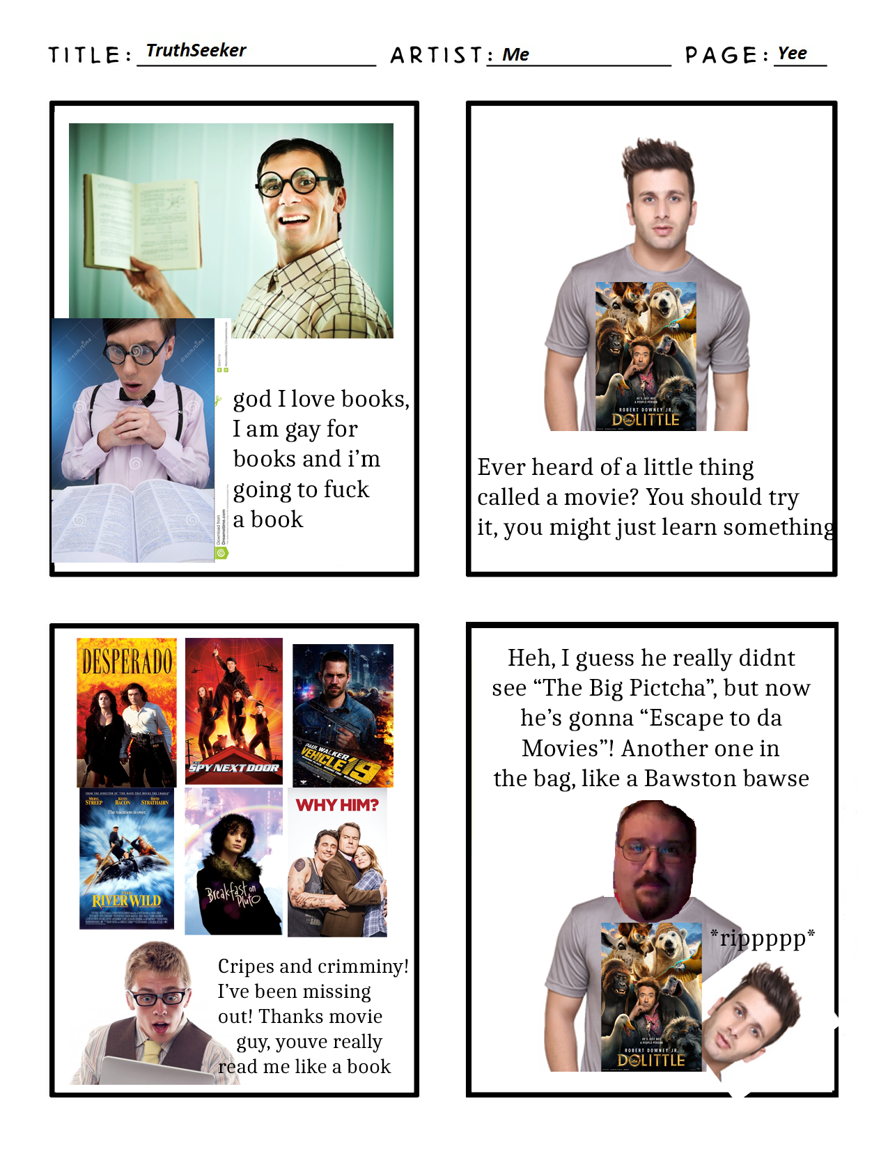 >>6016>>6026Films are only better than books if you are a retarded who can't mentally visualize the story, and hates to stop and analyze any phrase, theme or metaphor. And nowadays you can simply put on background music to accompany your reading, making the experience even better than simply watching a flick.