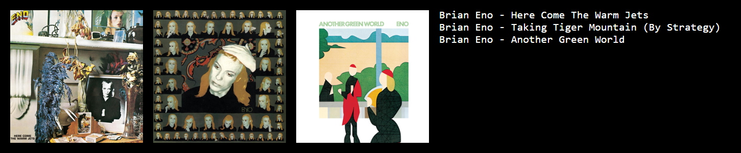 >>3104I loved Here Come the Warm Jets when I was younger. I only heard of Eno for his ambient music at the time.