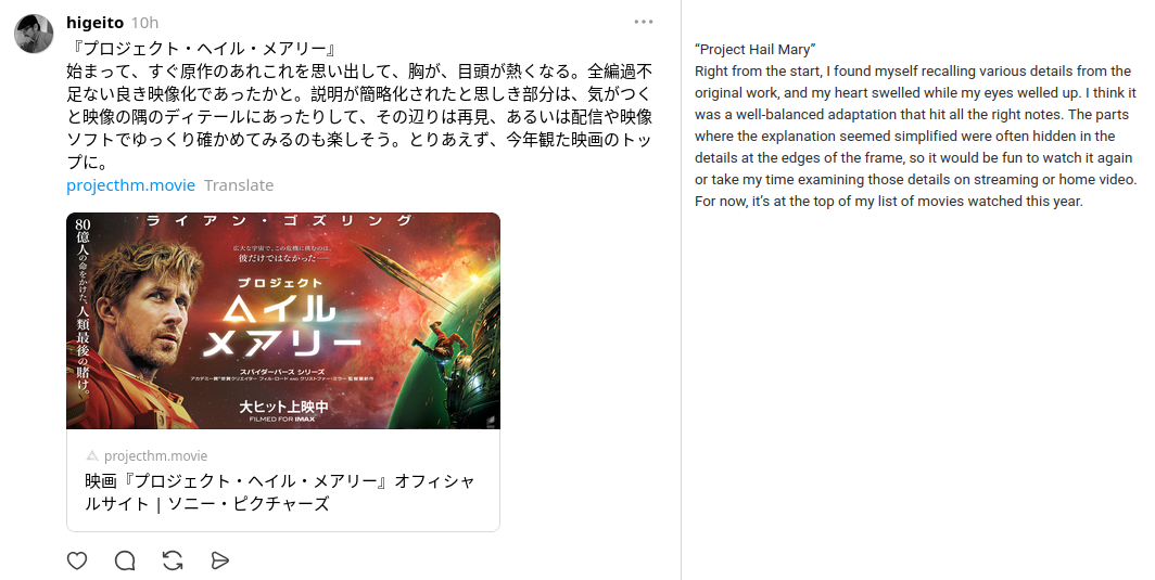 >>370436I watched both of them. I would say that Hail Mary is less serious but more emotionally impactful than Interstellar. There were people who almost started crying at Hail Mary, and while I didn't watch Interstellar at the cinema, I don't think there was anything in that movie to trigger any sort of emotions.